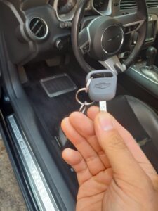車種はシボレー・カマロで車内に鍵を入れて扉を閉めたら鍵がかかってしまったとのことでした。
