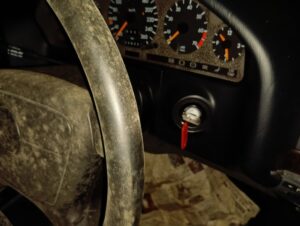 現場でお客様から事情を聞いたところ、スマートキーは有るがハンドルロックの鍵を無くしてしまい運転が出来ない状態とのことでした。