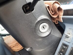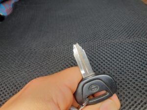 お客様からお話を聞いたところ挿した鍵が折れてしまい、エンジンがかけられないので鍵抜きと作成をお願いしたいとのことでした。